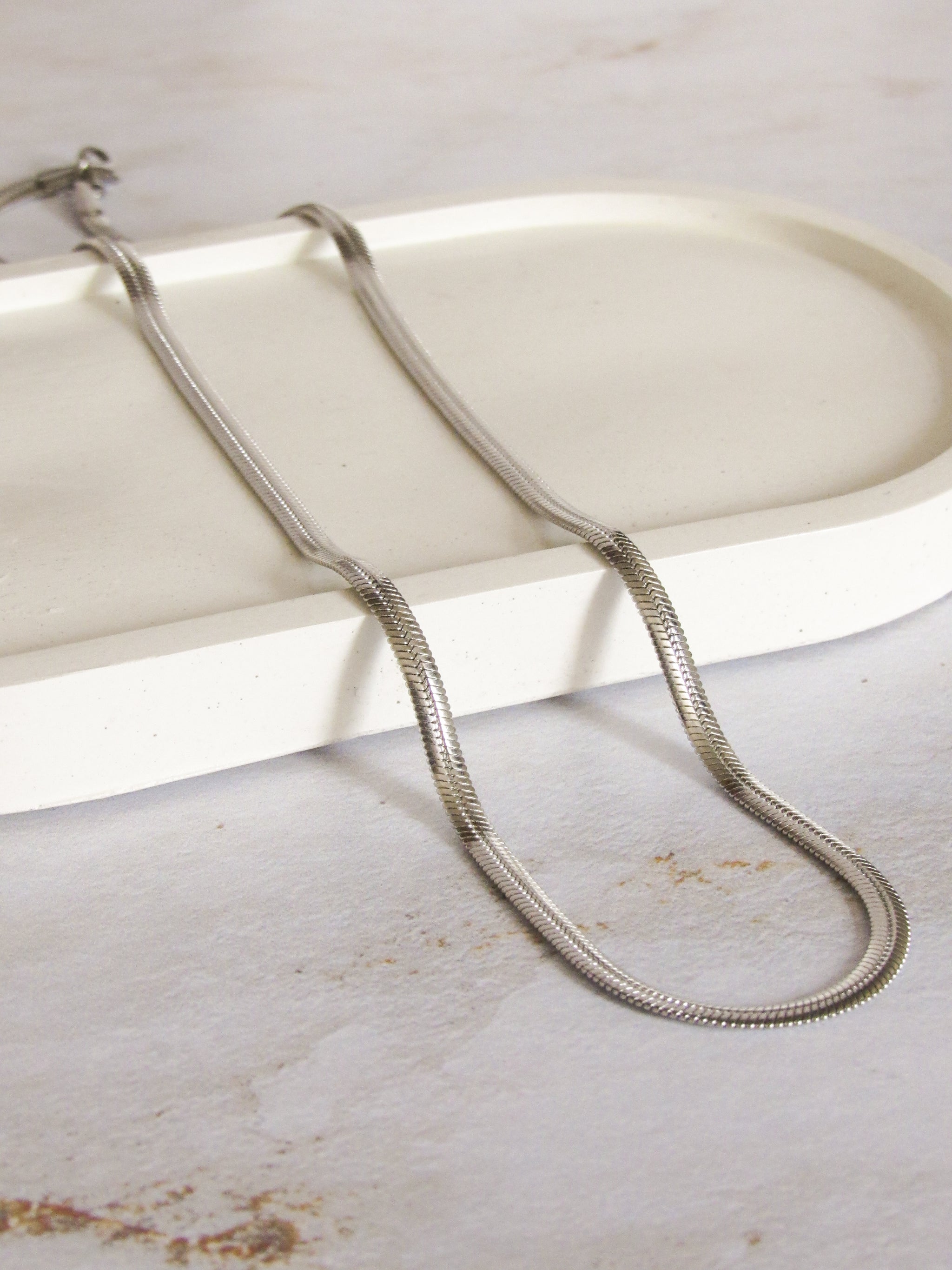 Es un material duradero y resistente que no se oxida ni cambia de color fácilmente, ideal para usar todos los días sin preocuparte por el agua o el sudor.